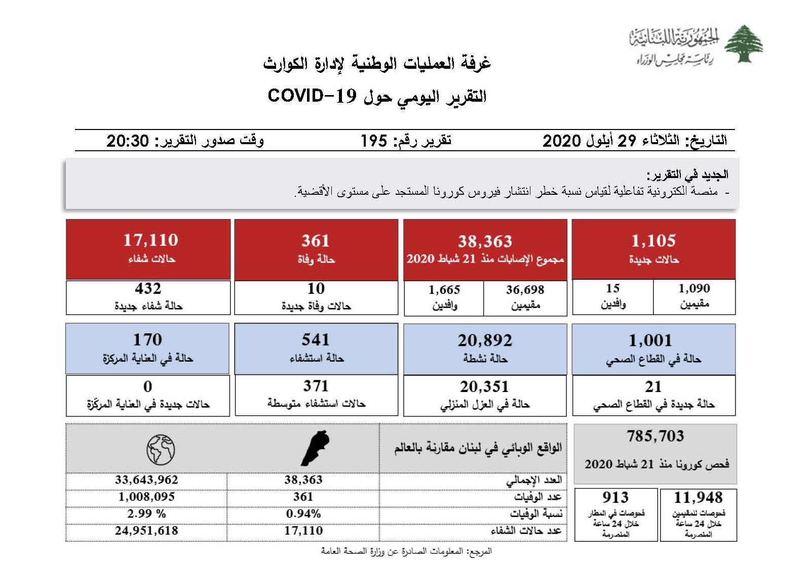 التقرير اليومي حول فيروس كورونا
